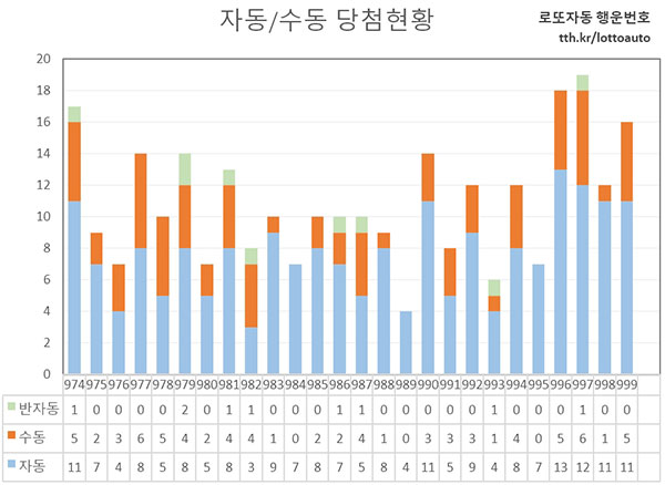 지난 999회차 1등은 자동 방식 11명, 수동 5명으로 파악 되었죠.