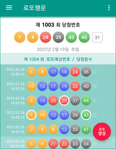 | 1005회 로또 당첨 번호 확인 4개 로또 예상 번호 일치한 당첨률 높은 로또번호 자동생성 1006회 예상번호 도전까지 (0) | 2022.03.05 |