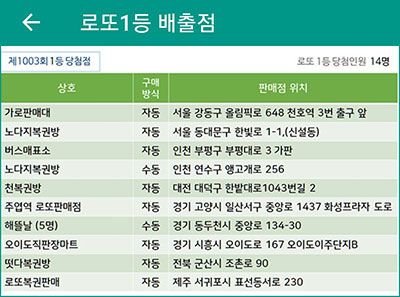 1004회 로또 당첨번호 추첨과 함께 로또 1등 배출점 정보 보면서 인근 로또 명당에서 로또 1005회 예상번호 수동으로 로또복권 도전하기 좋은거 같습니다.