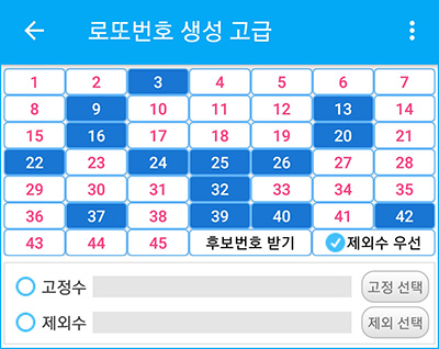 로또번호 자동은 편하게 로또 예상번호를 추출할 수 있고, 로또번호 고급은 고정수 제외수까지 설정하면서 로또 번호를 예측할 수 있습니다.