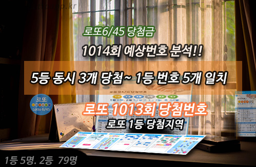 로또 당첨 번호 1013회 및 1014회 무료 예상번호 추출하는 로또645 활용법, 왜냐면 1013회 로또에서 5등 3개 동시 당첨되고, 1등 로또번호에서 5개 숫자를 찾았다는 놀라움이 이유입니다.
