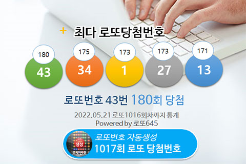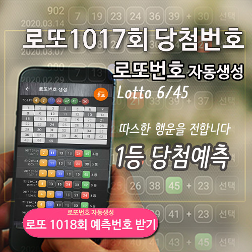 1017회 당첨번호 분석결과 확인하고, 바로 로또 1018회 예상번호 무료 추천 받으시길 바랍니다.