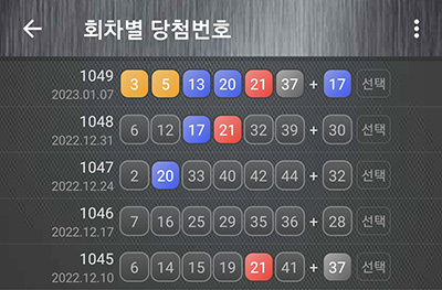 1049회 로또 당첨 번호는 과거 번호와 어떤 번호들이 일치하였을까요?