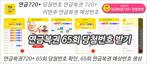 연금720+ 전문 연금앱으로 연금복권 예상번호 자동 생성 결과를 무료로 받을 수 있고, 65회 연금복권 당첨번호 기대 합니다.