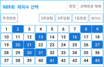 989회 제외수를 직전 1등 번호와 모의 번호를 사용하는 경우도 있는데, 11월은 제외 보다는 예상 989회 고정수 후보번호로 사용해 보면 어떨까요?