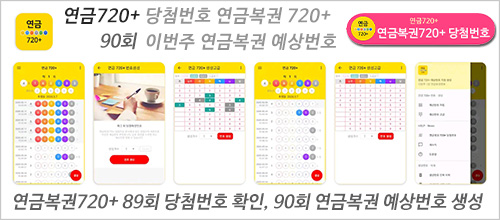 연금복권 720+ 당첨번호 조회와 90회 연금 예상번호 분석을 연금720+앱으로 체계적 관리 가능 합니다. 이용해 보세요.